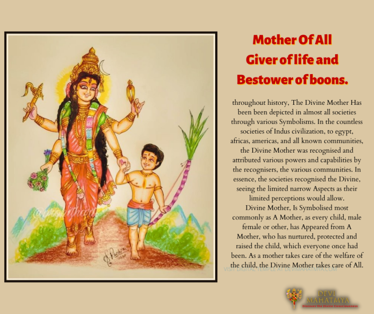 Divine Mother, Is Symbolised most commonly as A Mother, as every child, male female or other, has Appeared from A Mother, who has nurtured, protected and raised the child, which everyone once had been. As a mother takes care of the welfare of the child, the Divine Mother takes care of All.