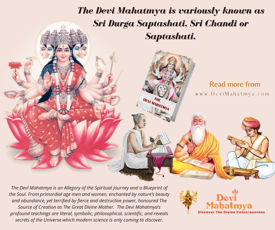 The Devi Mahatmya is variously known as Sri Durga Saptashati, Sri Chandi or Saptashati