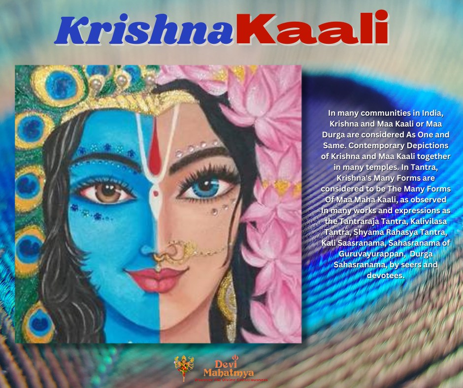 In many communities in India, Krishna and Maa Kaali Or Maa Durga are considered As One and Same. Contemporary Depictions of Krishna and Maa Kaali