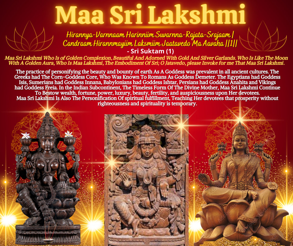 𝓜𝓪𝓪 𝓢𝓻𝓲 𝓛𝓪𝓴𝓼𝓱𝓶𝓲 Hirannya-Varnnaam Harinniim Suvarnna-Rajata-Srajaam |Candraam Hirannmayiim Laksmiim Jaatavedo Ma Aavaha ||1|| – Sri Suktam (1) Maa Sri Lakshmi Who Is of Golden Complexion,