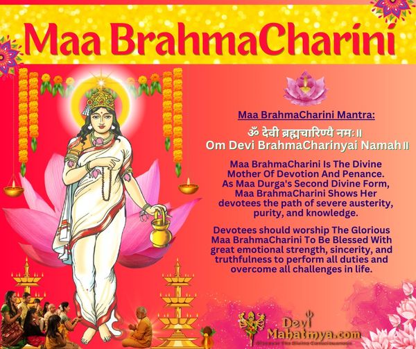 Devotees should worship The Glorious Maa BrahmaCharini To Be Blessed With great emotional strength, sincerity, and truthfulness to perform all duties and overcome all challenges in life.
