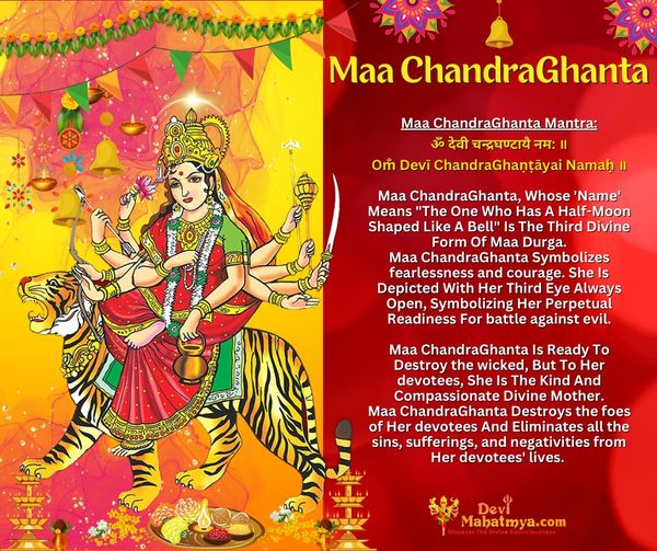 Maa ChandraGhanta, Whose ‘Name’ Means “The One Who Has A Half-Moon Shaped Like A Bell” Is The Third Divine Form Of Maa Durga.