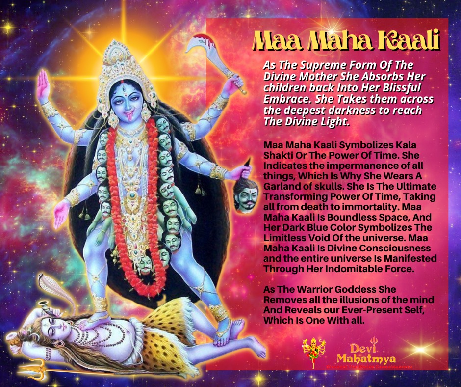 As The Supreme Form Of The Divine Mother She Absorbs Her children back Into Her Blissful Embrace. She Takes them across the deepest darkness to reach The Divine Light.