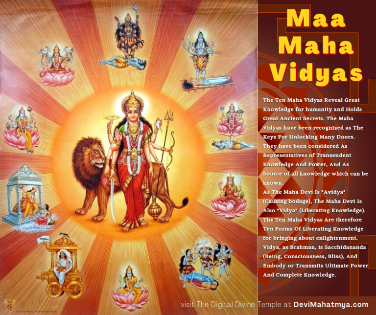 As The Maha Devi Is “Avidya” (Causing bondage), The Maha Devi Is Also “Vidya” (Liberating Knowledge). The Ten Maha Vidyas Are therefore Ten Forms Of Liberating Knowledge for bringing about enlightenment.