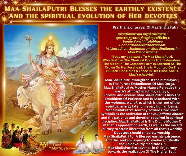 MAA SHAILAPUTRI BLESSES THE EARTHLY EXISTENCE AND THE SPIRITUAL EVOLUTION OF HER DEVOTEES