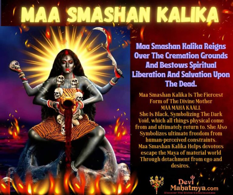 Maa Smashan Kalika Helps devotees escape the Maya of material world Through detachment from ego and desires.