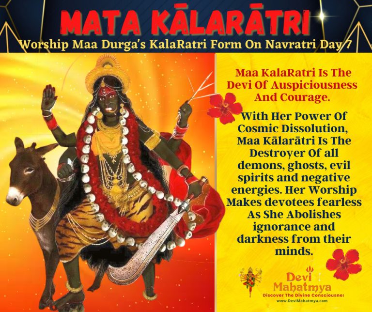 With Her Power Of Cosmic Dissolution, Maa KalaRatri Is The Destroyer Of all demons, ghosts, evil spirits and negative energies. Her Worship Makes devotees fearless As She Abolishes ignorance and darkness from their minds.