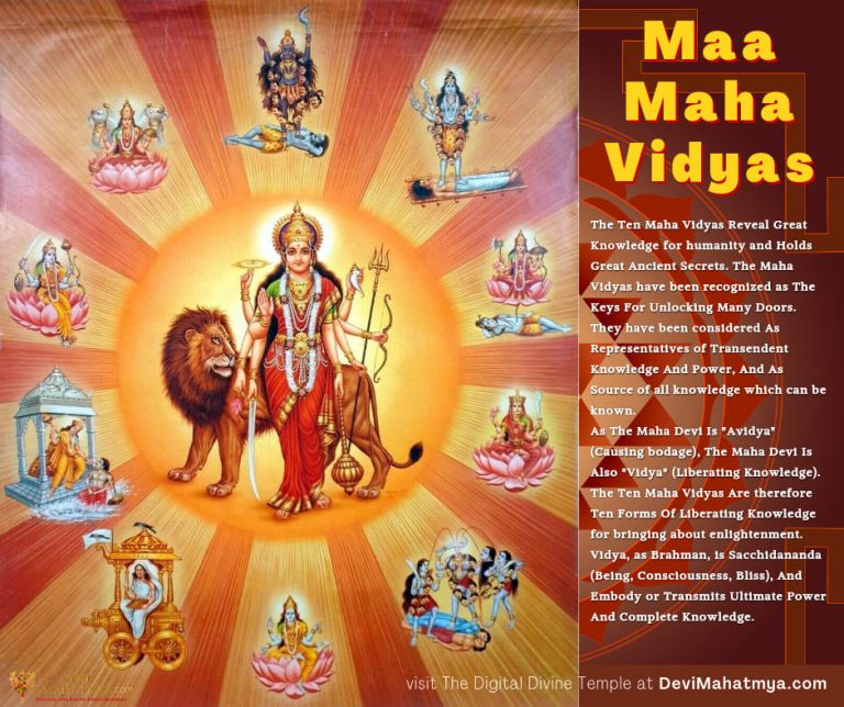As The Transcendental Forms Of The Divine Mother Maa Maha Kaali, The Ten MahaVidyas Signify Ten types of Disciplines that help reach the ultimate goal of one’s spiritual life. In Sanskrit, “Maha” means “Great” and “Vidya” means “Knowledge, which is absolutely befitting as in the process of life and spiritual learning, The Divine Mother In Her Ten Divine Forms Guide us, Inspire us, And Unfold the inner truth.