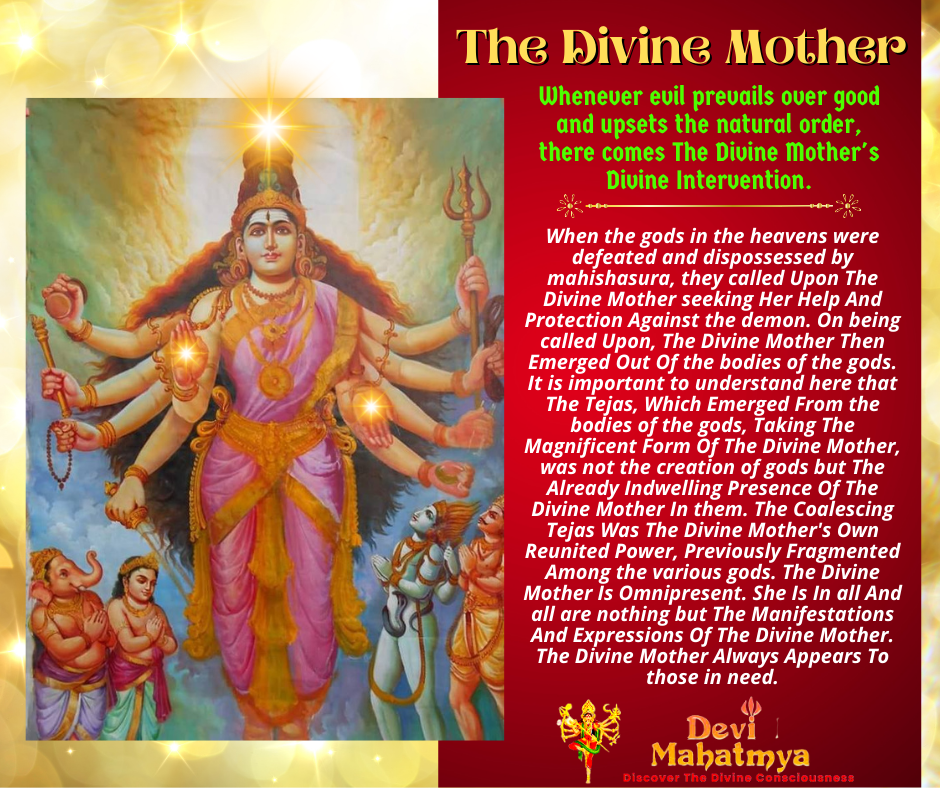 Whenever evil prevails over good and upsets the natural order, there comes The Divine Mother’s Divine Intervention.