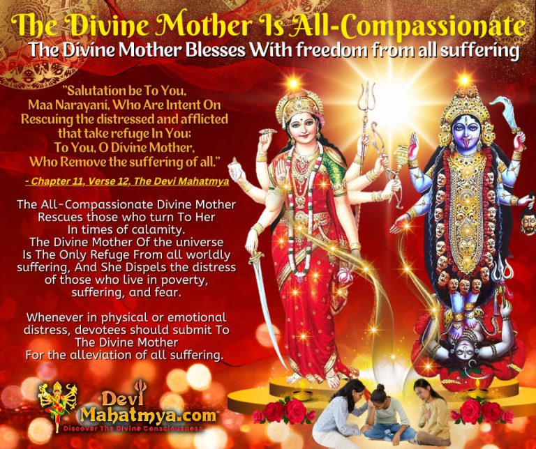 The All-Compassionate Divine Mother Rescues those who turn To Her In times of calamity. The Divine Mother Of the universe Is The Only Refuge From all worldly suffering, And She Dispels the distress of those who live in poverty, suffering, and fear.